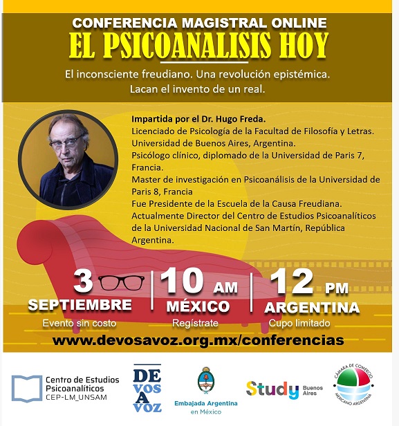 El inconsciente freudiano. Una revolución epistémica. Lacan el invento de un real. Una conferencia del director del Centro de Estudios Psicoanalíticos de UNSAM, Hugo Freda. El jueves 3 de setiembre, 12 hs de Argentina, 10 hs de México.