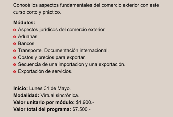 ABC-Comex, inicia lunes 31 de mayo, on line/ Serie de charlas gratuitas on line: Estrategias de Comercialización en las Industrias Culturales, desde el 27 de mayo/ Programa ejecutivo riesgos globales y regionales, on line, inicia jueves 3 de junio